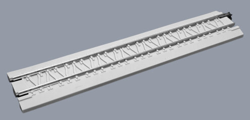• Maßlich sind die Elemente kompatibel mit handelsüblichen Bettungsgleis-Bauteilen, ebenso sind handelsübliche Schienenverbinder verwendbar.
